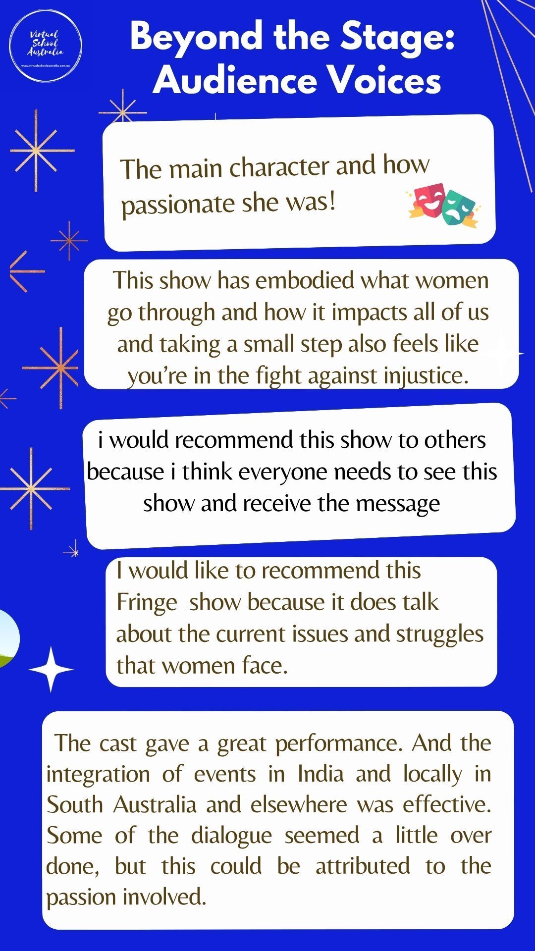 π This is an opportunity for students to engage with a powerful performance that aligns with the South Australian curriculum on social justice, gender equality, and advocacy.